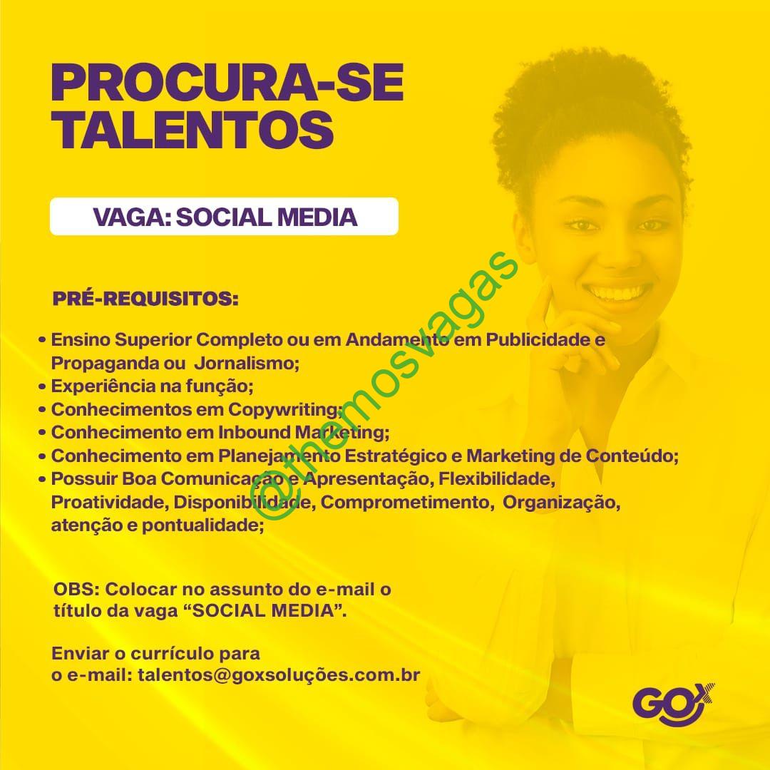 Interessados(as) e que atendam ao perfil solicitado acima, devem enviar o currículo para o e-mail talentos@goxsolucoes.com.br, contendo no título/assunto “Social Média”.