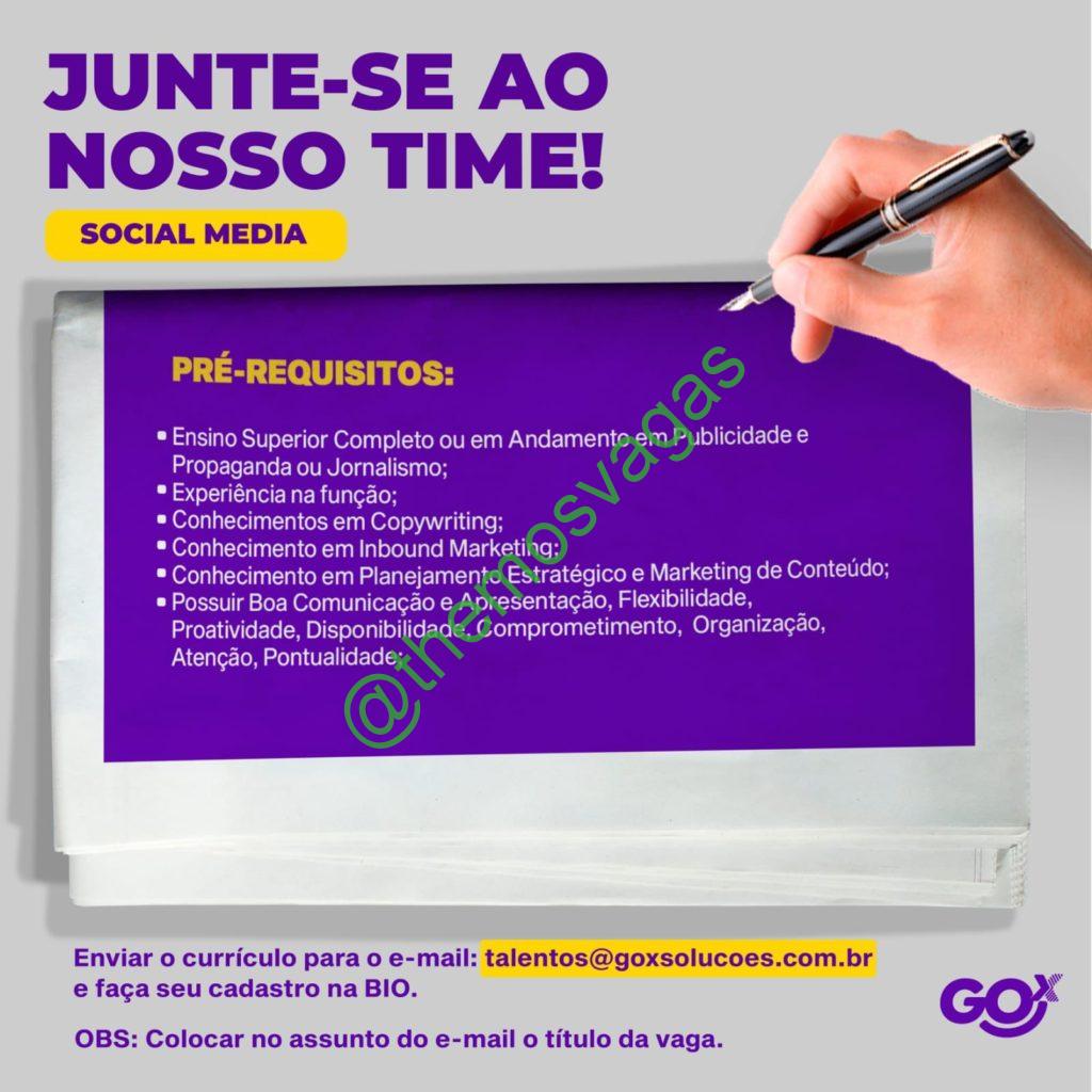 – Interessados(as) e que atendam ao perfil solicitado acima, devem enviar o currículo para o e-mail talentos@goxsolucoes.com.br contendo no título/assunto “Social Media THE” ou cadastrar-se através do Formulário de Cadastro.
