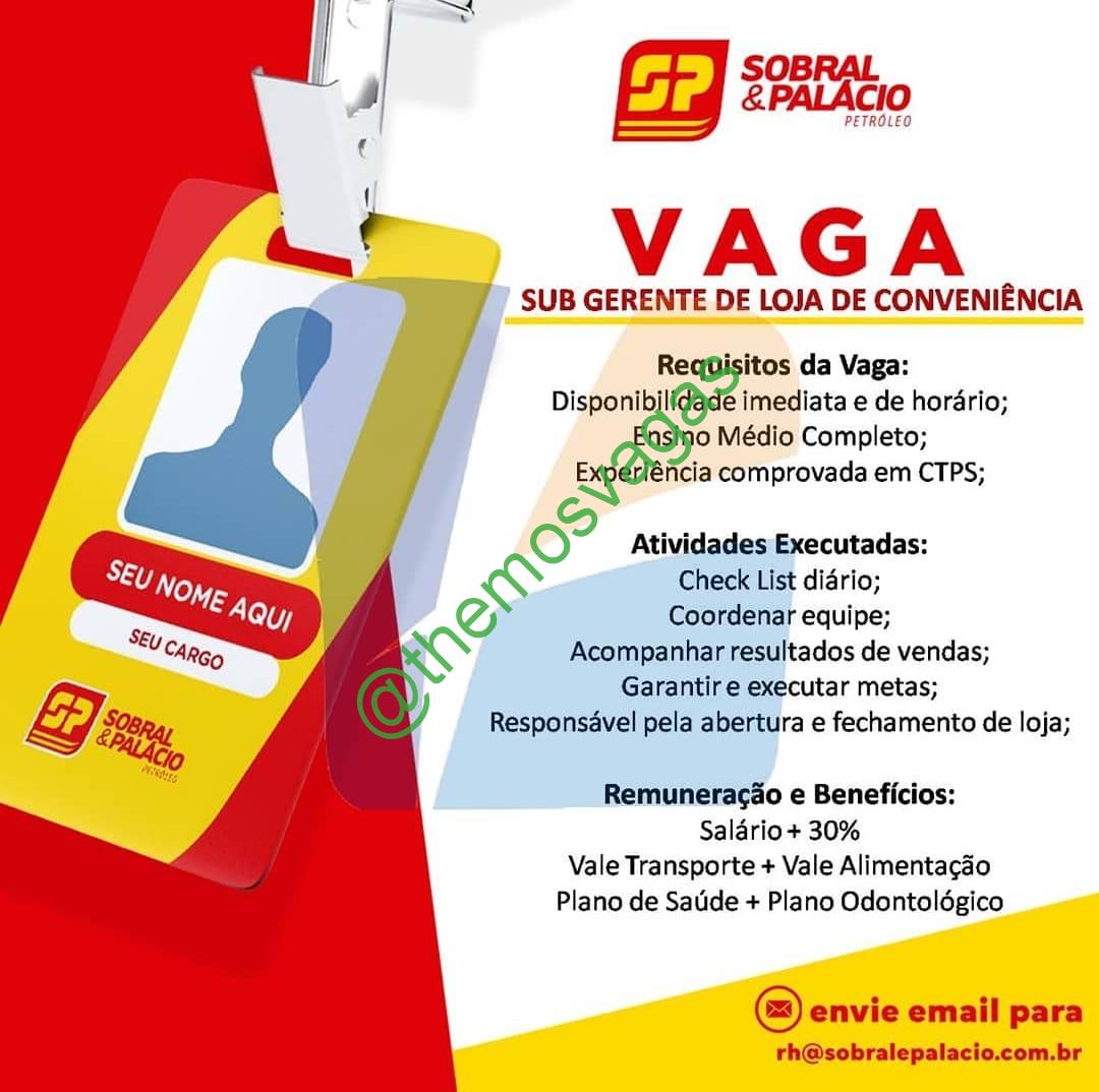 – Interessados(as) e que atendam ao perfil solicitado acima, devem enviar o currículo para o e-mail rh@sobralepalacio.com.br, contendo no titulo/assunto “Sub Gerente – FOR”.