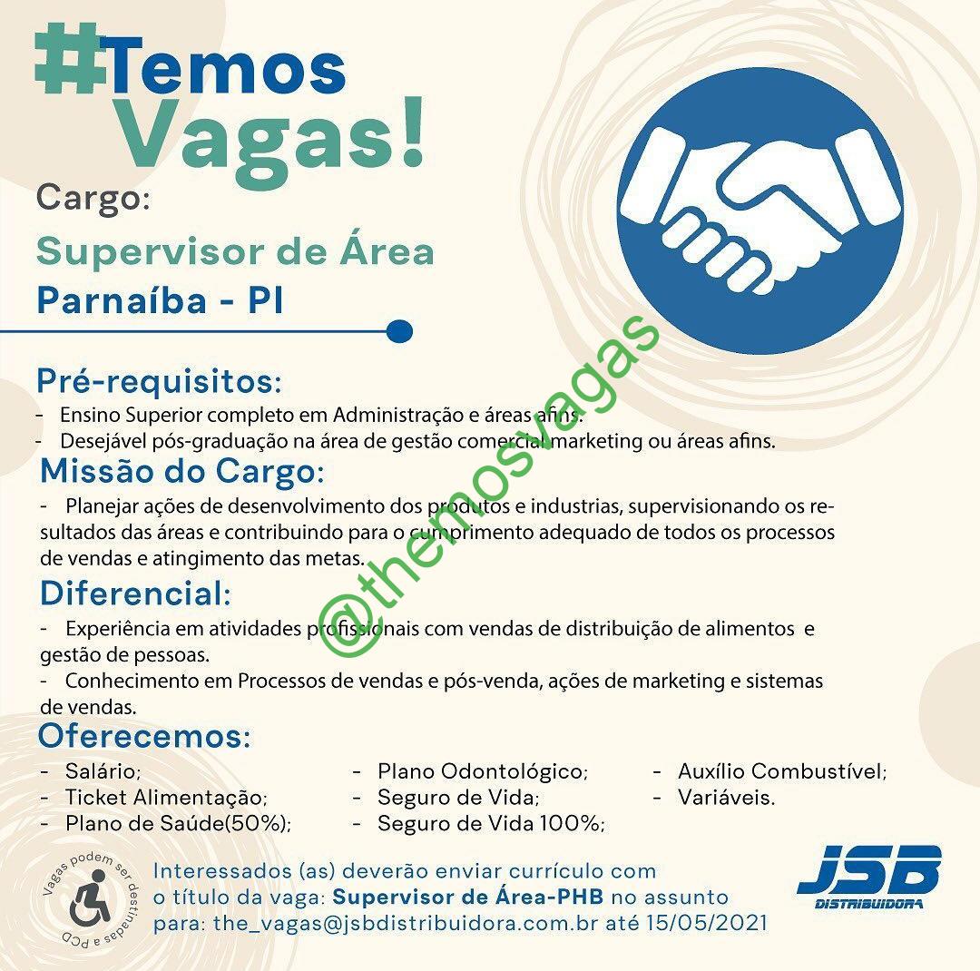 – Interessados(as) e que atendam ao perfil solicitado acima, devem enviar o currículo até 15/05/2021 para o e-mail the_vagas@jsbdistribuidora.com.br contendo no título/assunto “Supervisor de Área PHB