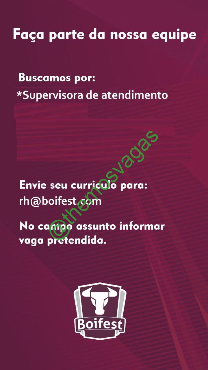 – Interessados(as) e que atendam ao perfil solicitado acima, devem enviar o currículo para o e-mail rh@boifest.com, contendo no titulo/assunto “Supervisor de Atendimento – FOR