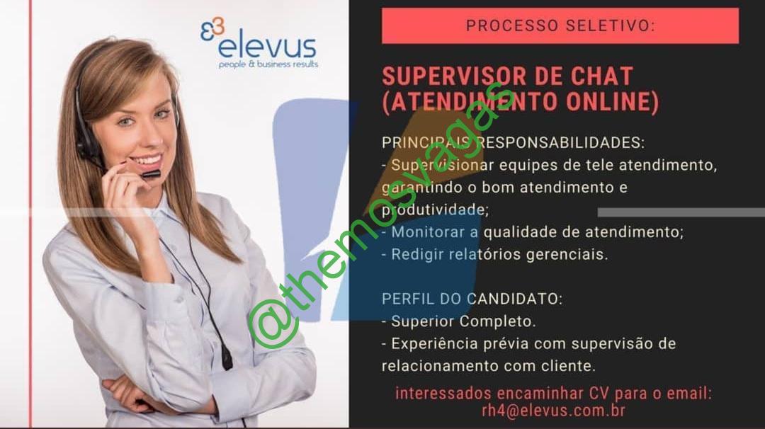 – Interessados(as) e que atendam ao perfil solicitado acima, devem enviar o currículo para o e-mail selecao4@elevus.com.br, contendo no titulo/assunto “Supervisor de Chat – FOR”.