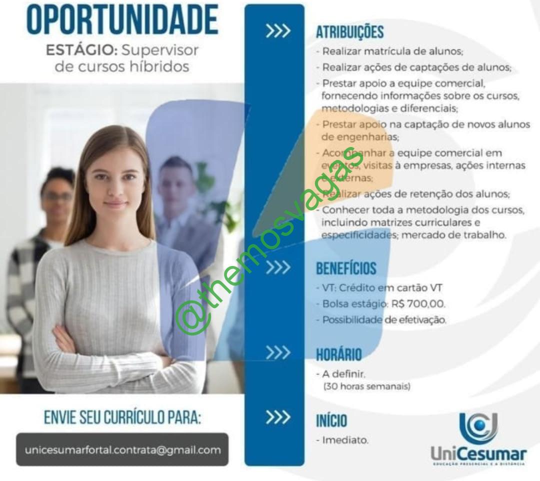 ---------- ATENÇÃO: Essa vaga é de responsabilidade do anunciante. Fique atento para possíveis golpes. Se perceber algo suspeito, nos comunique através do e-mail floromauel@gmail.com colocando no título "Themos Vagas - Denúncia" juntamente com o link da publicação e o motivo da denúncia na descrição da mensagem para que possamos analisar e parar de divulgar o anúncio. ----------