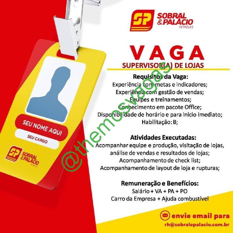 – Interessados(as) e que atendam ao perfil solicitado acima, devem enviar o currículo para o e-mail rh@sobralpalacio.com.br, contendo no titulo/assunto “Supervisor de Loja FOR”.