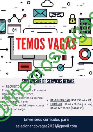 – Interessados(as) e que atendam ao perfil solicitado acima, devem enviar o currículo para o e-mail selecionandovagas2021@gmail.com, com o titulo/assunto “Supervisor de Serviços Gerais – FOR