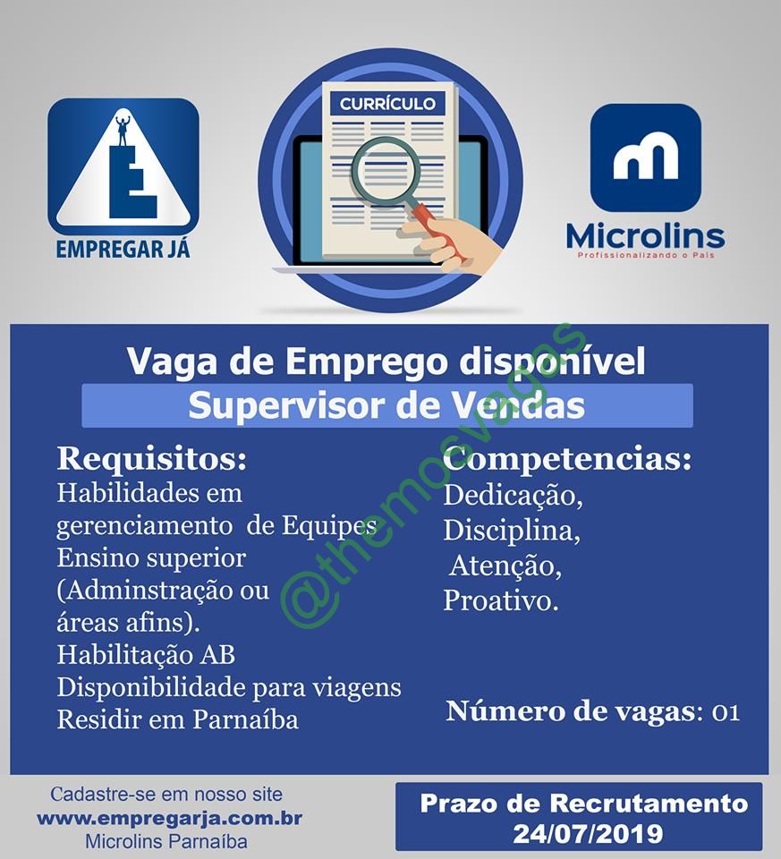Supervisor de Vendas / 01 vaga(s) / Parnaíba – PI