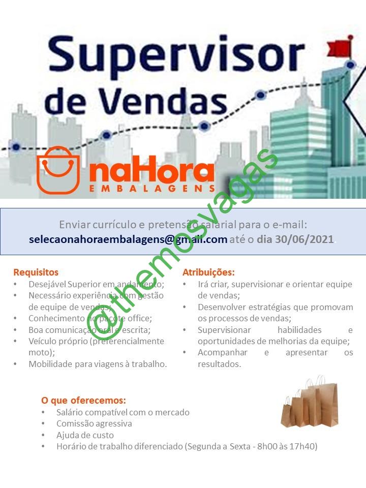 – Interessados(as) e que atendam ao perfil solicitado acima, devem enviar o currículo até 30/06/2021 para o e-mail selecaonahoraembalagens@gmail.com, contendo no titulo/assunto “Supervisor de Vendas – FOR”.