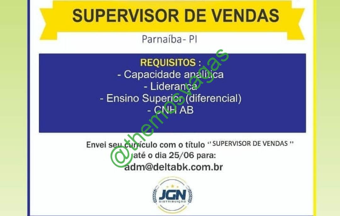 Supervisor de Vendas | Parnaíba – PI | 01 vaga(s)