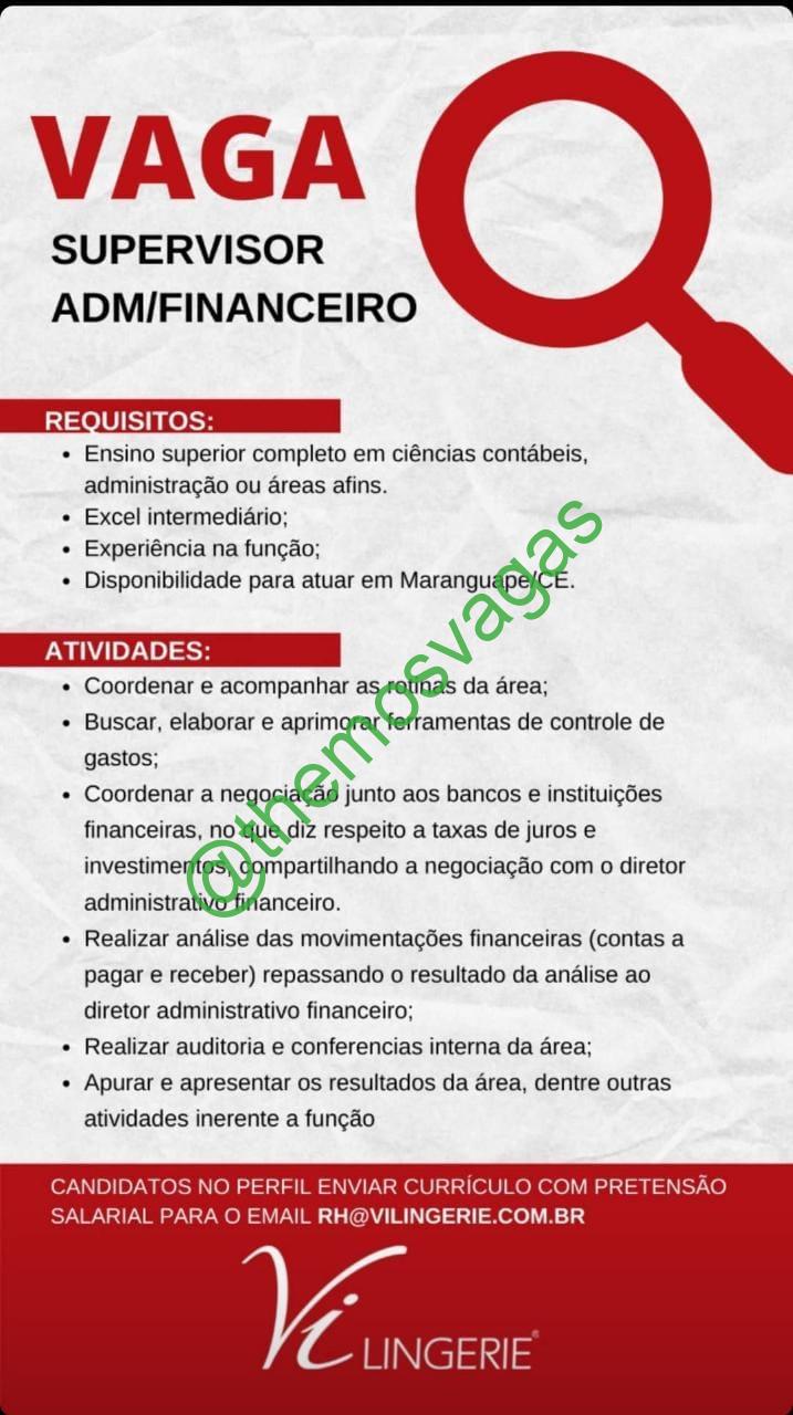 –  Interessados(as) e que atendam ao perfil solicitado acima, devem enviar o currículo para o e-mail rh@vilingerie.com.br, contendo no titulo/assunto “Supervisor Financeiro – FOR”.