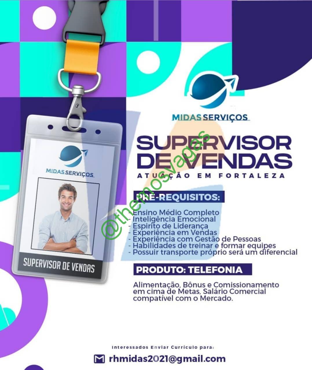 – Interessados(as) e que atendam ao perfil solicitado acima, devem enviar o currículo para o e-mail rhmidas2021@gmail.com contendo no título/assunto “Supervisor(a) de Vendas – FOR“.