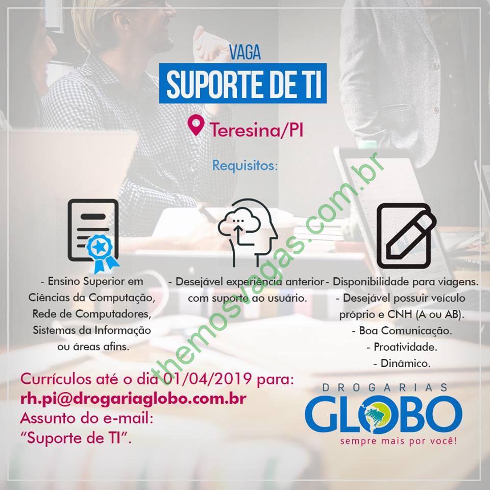 Suporte de TI na ‘Drogarias Globo’ em Teresina – PI