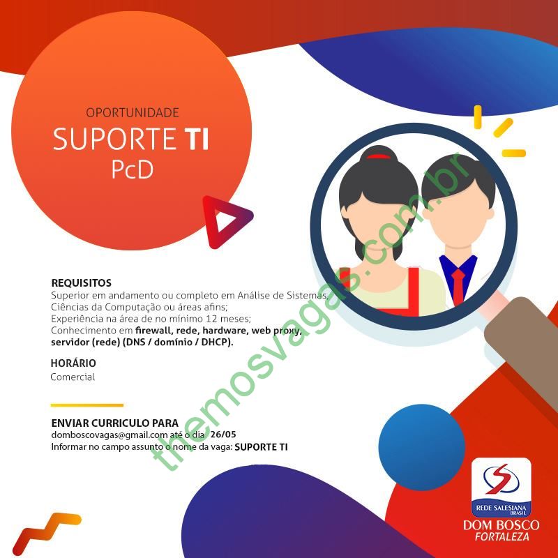 – Interessados(as) e que atendam ao perfil solicitado acima, devem enviar o currículo para o e-mail domboscovagas@gmail.com até o dia 26/05/2019, colocando no título “Suporte TI”.