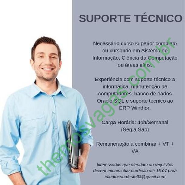 – Interessados(as) e que atendam ao perfil solicitado acima, devem enviar o currículo até 15/07/2019 para o e-mail talentosnordeste03@gmail.com contendo no título/assunto “Suporte Técnico THE“.