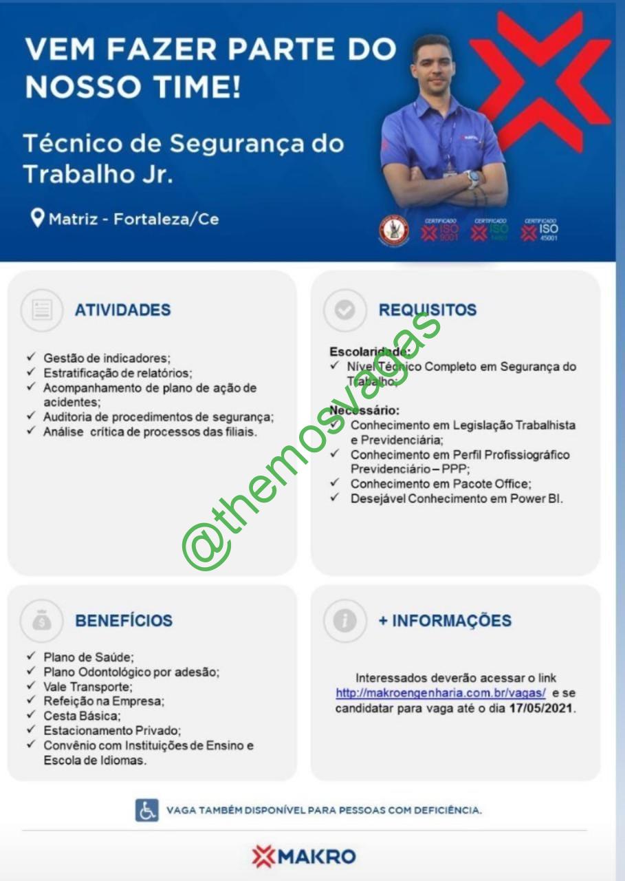 Técnico de Segurança do Trabalho Jr | Fortaleza – CE | 01 vaga(s)