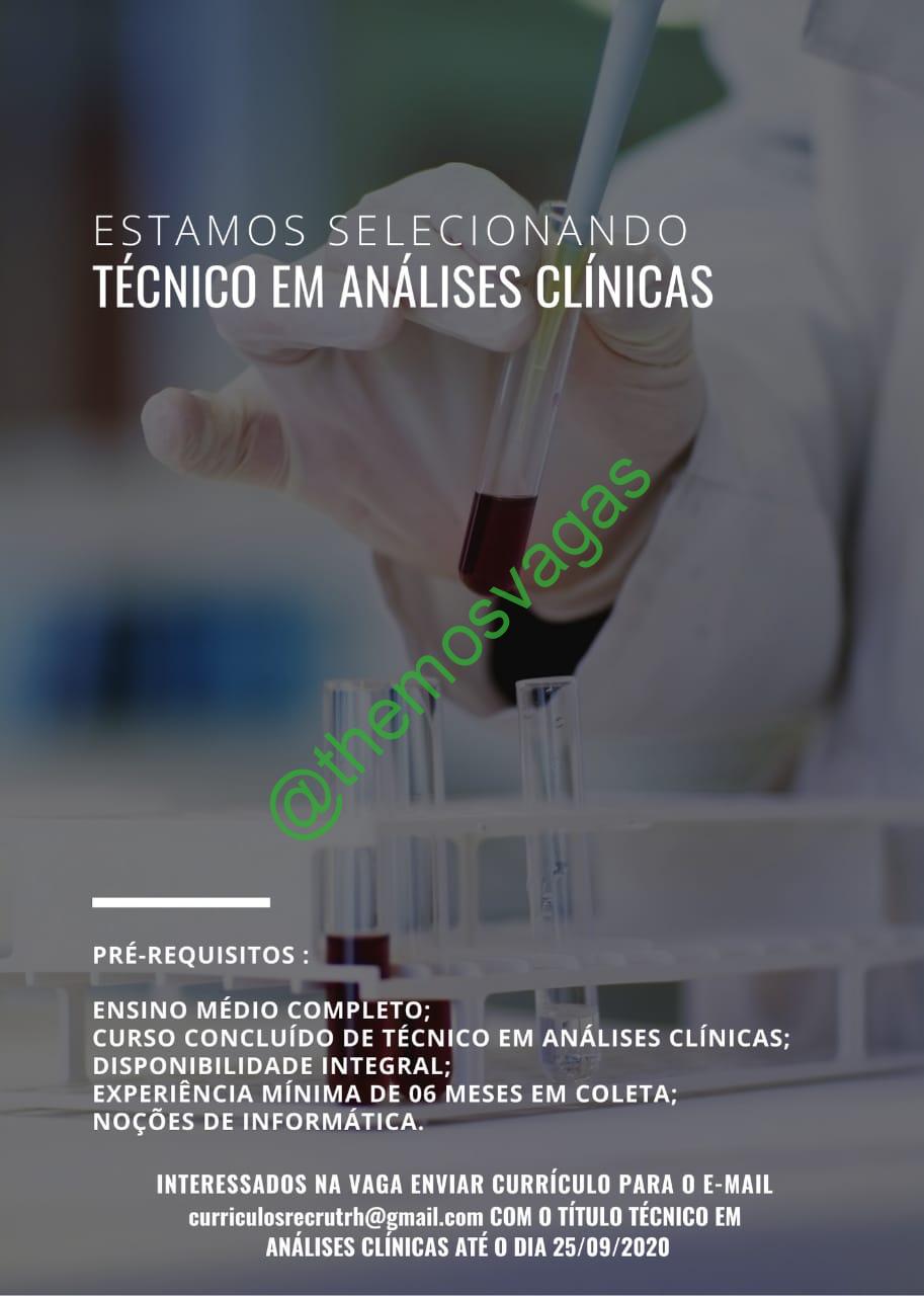 – Interessados(as) e que atendam ao perfil solicitado acima, devem enviar o currículo até 25/09/2020 para o e-mail curriculosrecrutrh@gmail.com contendo no título/assunto “Técnico em Análises Clínicas THE