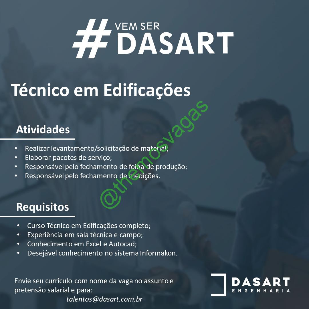 – Interessados(as) e que atendam ao perfil solicitado acima, devem enviar o currículo para o e-mail talentos@dasart.com.br, contendo no titulo/assunto “Téc em Edificações – FOR”.