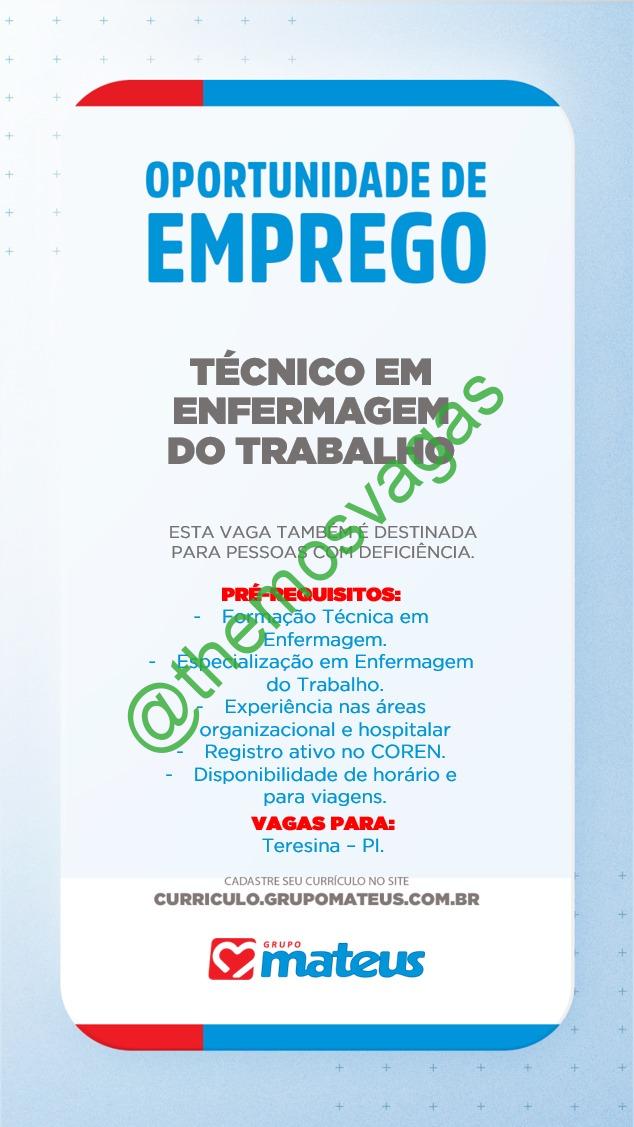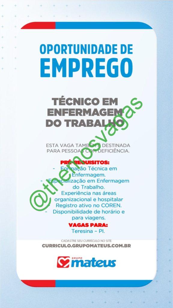 Tec em Enfermagem do Trabalho | Teresina – PI | 01 vaga(s)