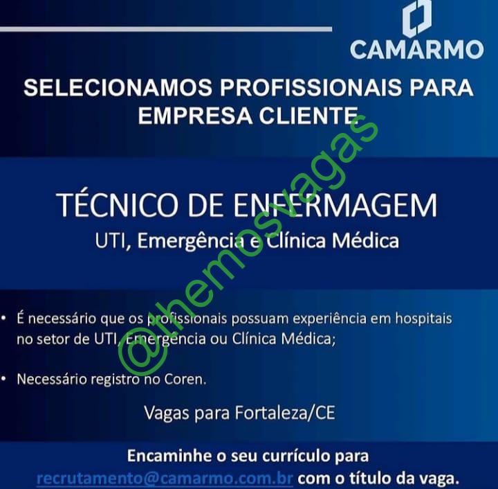 – Interessados(as) e que atendam ao perfil solicitado acima, devem enviar o currículo para o e-mail recrutamento@camarmo.com.br , com o titulo/assunto “Técnico de Enfermagem – FOR”.