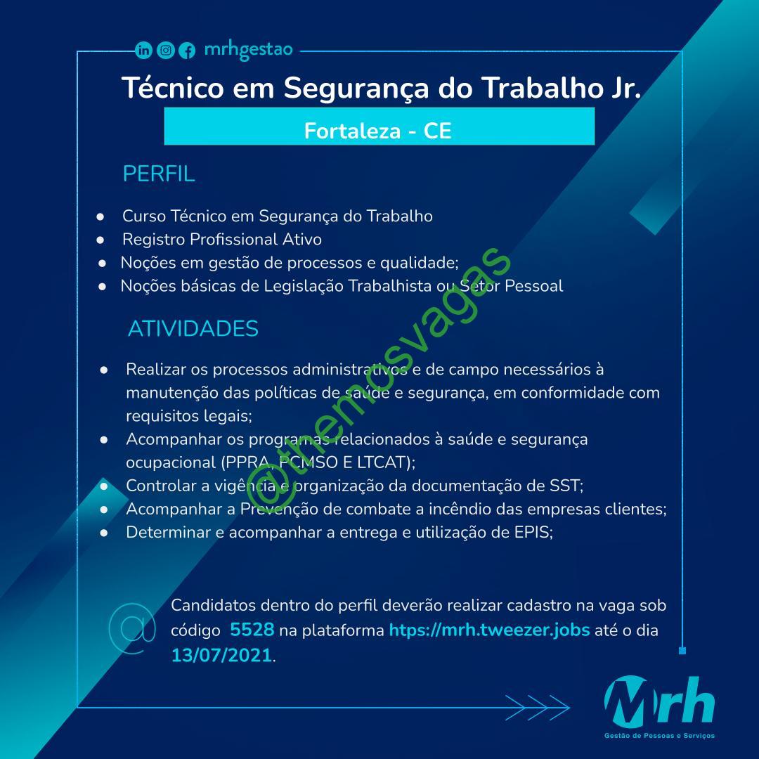 Técnico Segurança do Trabalho | Fortaleza – CE | 01 vaga(s)