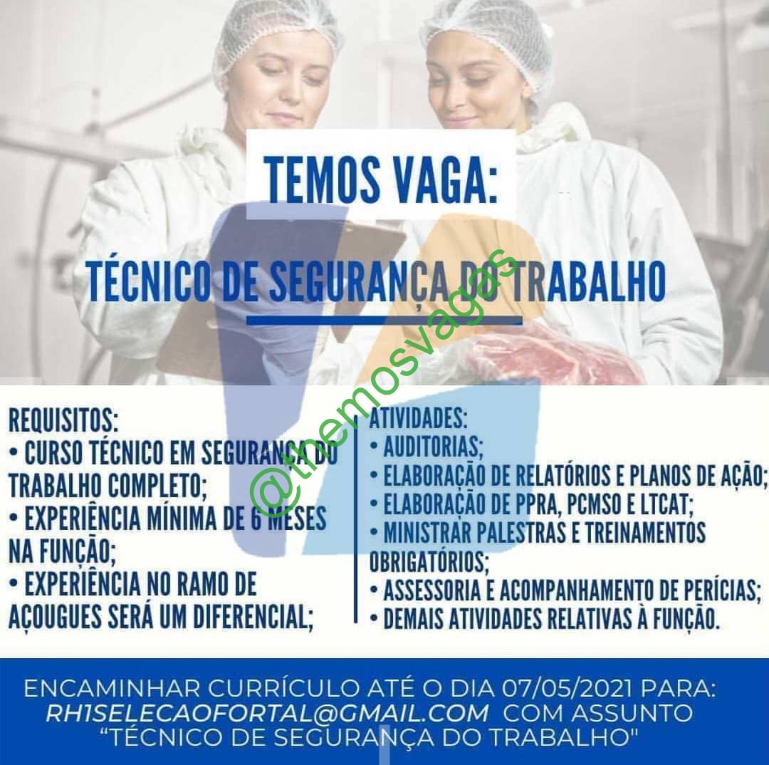 – Interessados(as) e que atendam ao perfil solicitado acima, devem enviar o currículo até 07|05|2021 para o e-mail rh1selecaofortal@gmail.com, contendo no título/assunto “Técnico Segurança do Trabalho – FOR”.