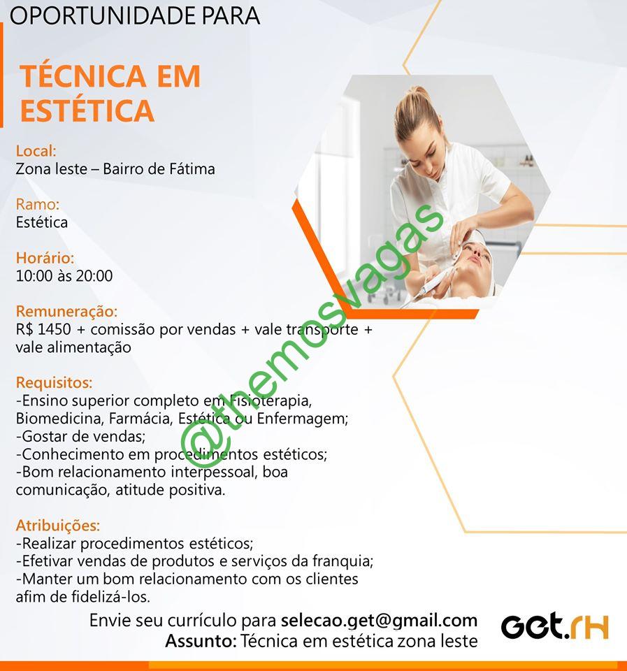 – Interessados(as) e que atendam ao perfil solicitado acima, devem enviar o currículo para o e-mail selecao.get@gmail.com , colocando no título/assunto: “Técnica em Estética – Zona Leste”.