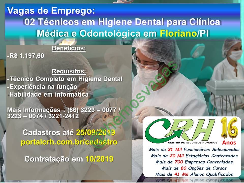 Técnico de Higiene Dental / 02 vaga(s) / Floriano – PI