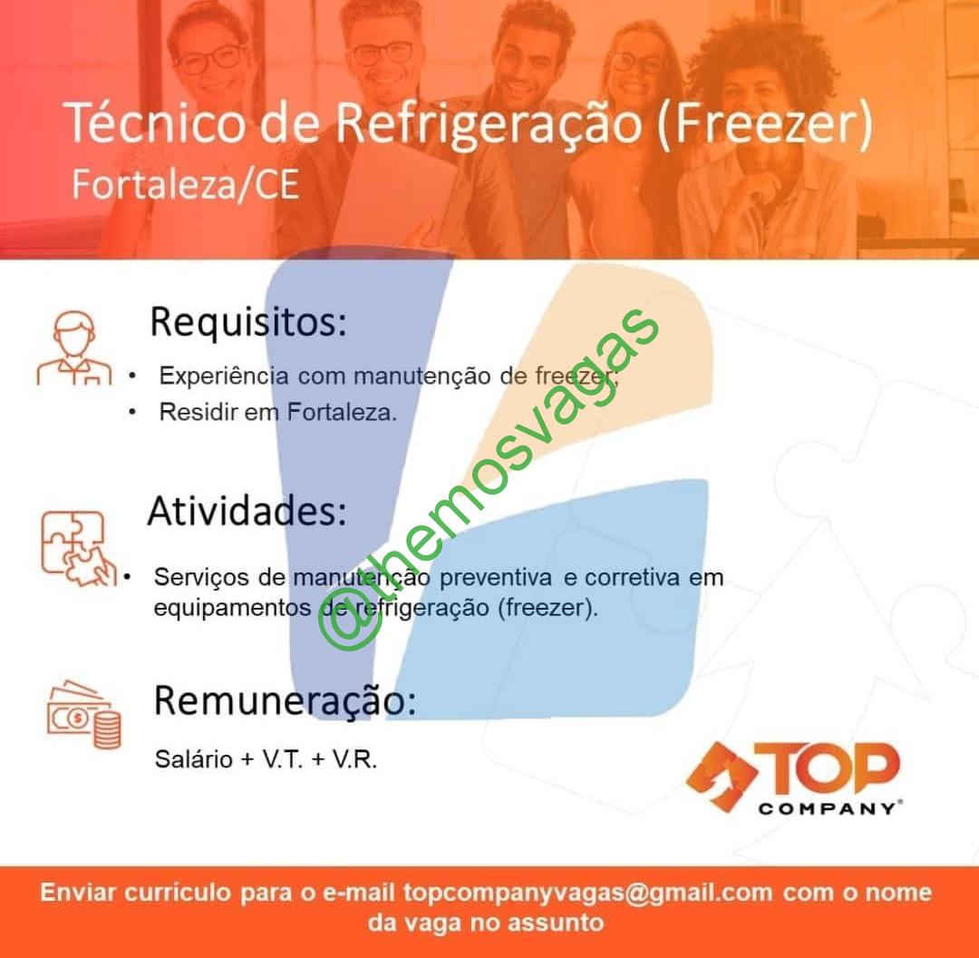 – Interessados(as) e que atendam ao perfil solicitado acima, devem enviar o currículo  para o e-mail topcompanyvagas@gmail.com, contendo no titulo/assunto “Técnico de Refrigeração – FOR”.
