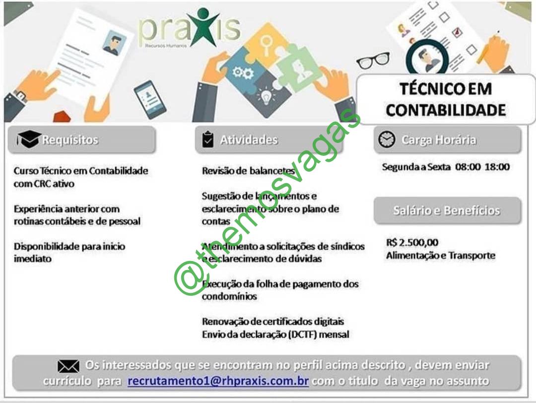 – Interessados(as) e que atendam ao perfil solicitado acima, devem enviar o currículo para o e-mail recrutamento1@rhpraxis.com.br, contendo no titulo/assunto “Técnico em Contabilidade – FOR