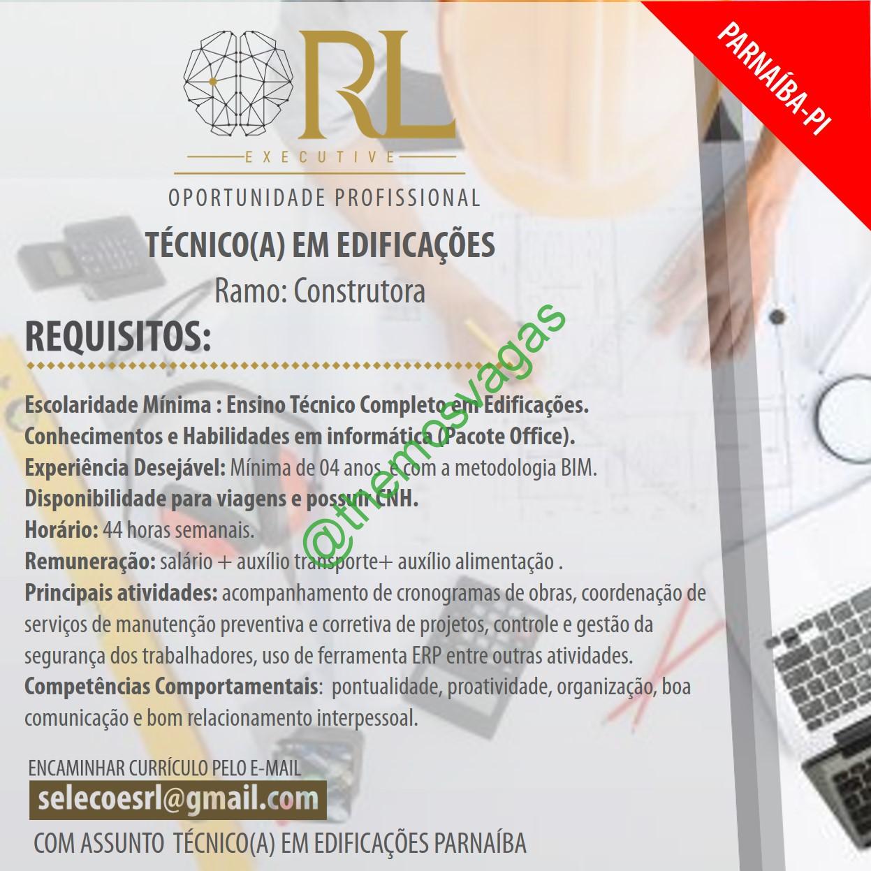 Técnico em Edificações | Parnaíba – PI | 01 vaga(s)