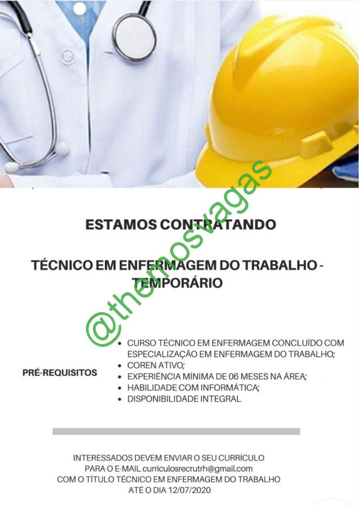 – Interessados(as) e que atendam ao perfil solicitado acima, devem enviar o currículo até 12/07/2020 para o e-mail curriculosrecrutrh@gmail.com contendo no título/assunto “Técnico em Enfermagem do Trabalho THE