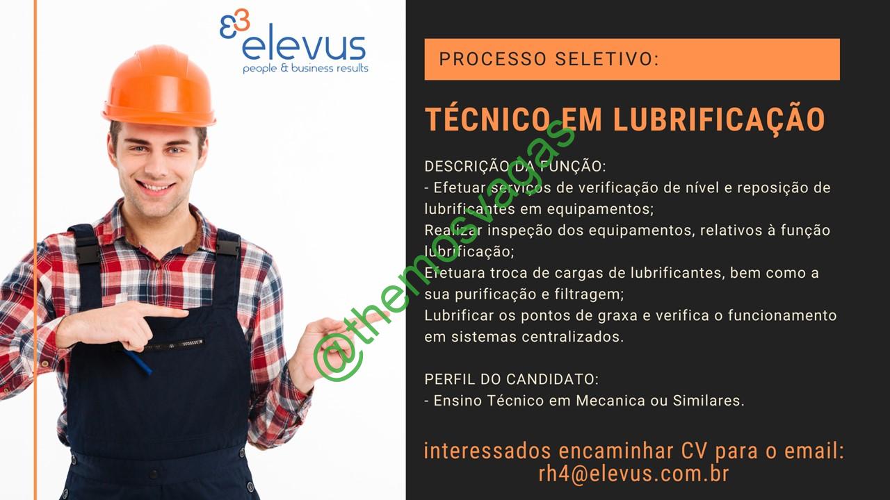 – Interessados(as) e que atendam ao perfil solicitado acima, devem enviar o currículo para o e-mail rh14@elevus.com.br, contendo no titulo/assunto “Técnico em Lubrificação – FOR”