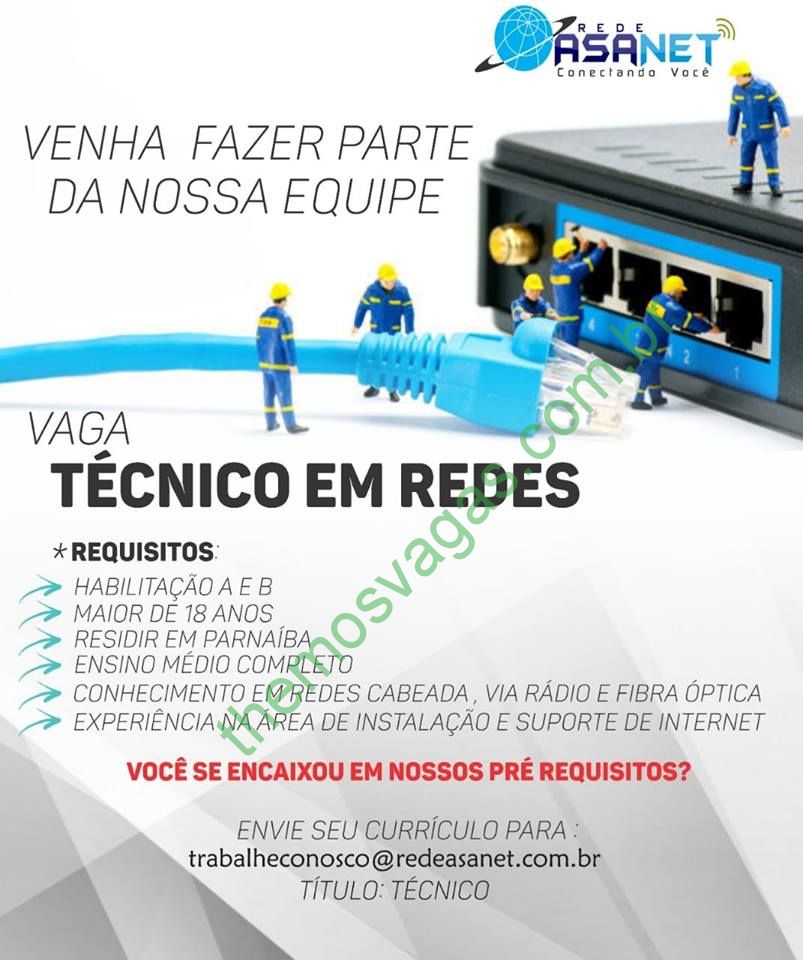 – Interessados(as) e que atendam aos requisitos devem enviar o perfil profissional, colocando no título do e-mail “Técnico”, para: trabalheconosco@redeasanet.com.br