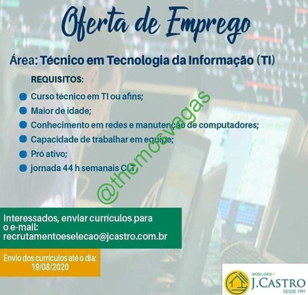 – Interessados(as) e que atendam ao perfil solicitado acima, devem enviar o currículo até 19/08/2020 para o e-mail recrutamentoselecao@jcastro.com.br contendo no título/assunto “Técnico em TI”