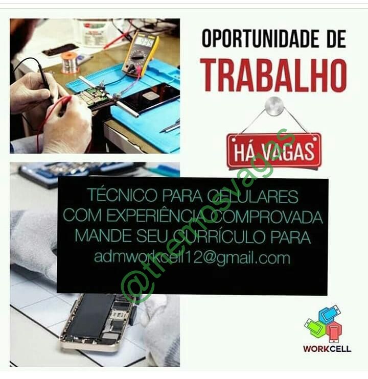 – Interessados(as) e que atendam ao perfil solicitado acima, devem enviar o currículo para o e-mail admworkcell12@gmail.com , colocando no título “Técnico(a) de Celular”.