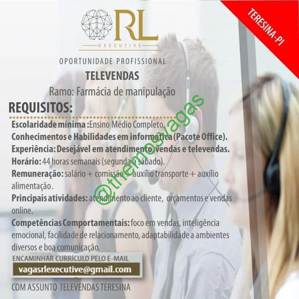 – Interessados(as) e que atendam ao perfil solicitado acima, devem enviar o currículo para o e-mail vagasrlexecutive@gmail.com contendo no título/assunto “Televendas Teresina