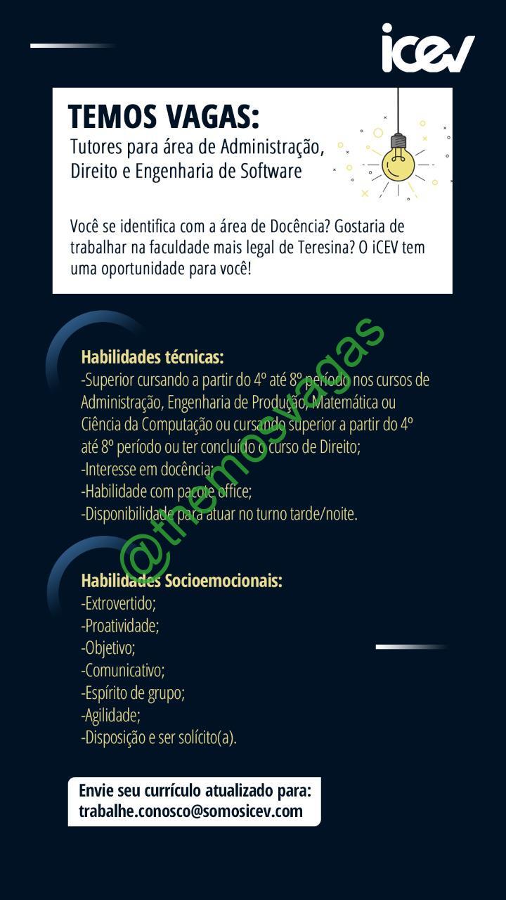 – Interessados(as) e que atendam ao perfil solicitado acima, devem enviar o currículo para o e-mail trabalhe.conosco@somosicev.com contendo no título/assunto “Tutor Superior THE