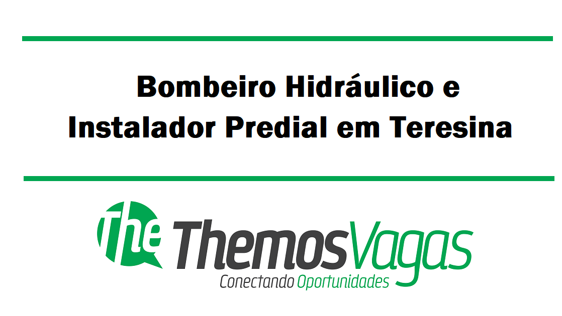 Vaga de emprego para Bombeiro Hidráulico e Instalador Predial em Teresina – PI