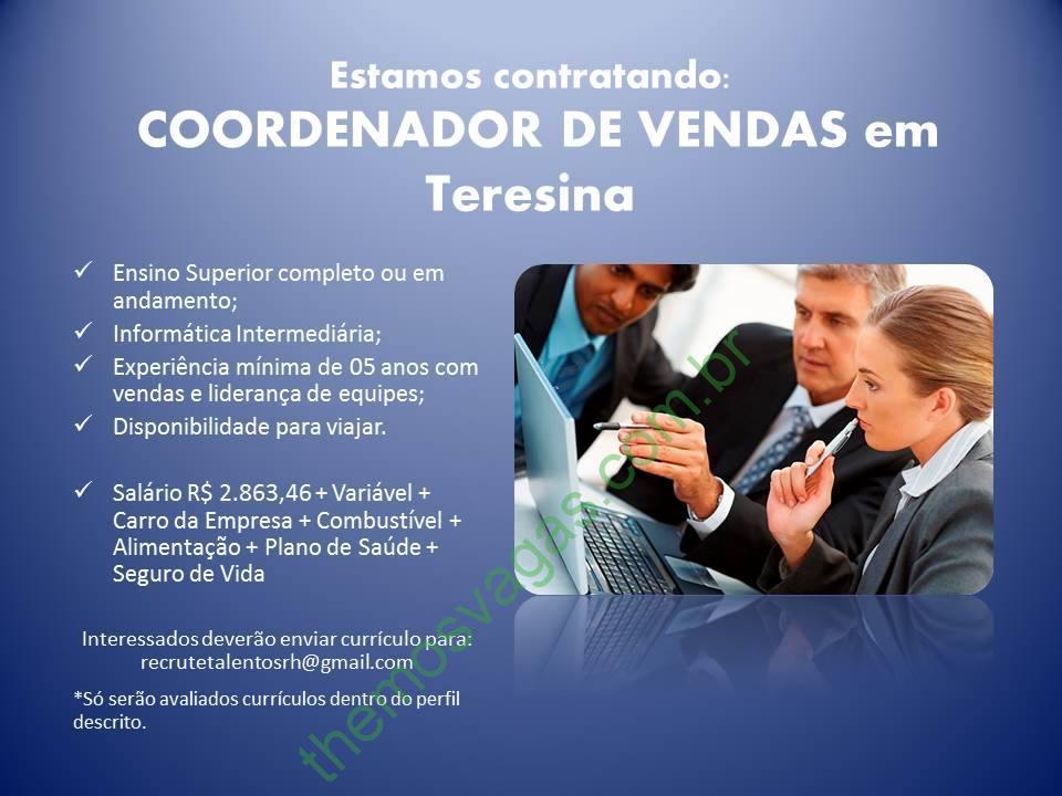 Vaga de emprego para Coordenador de Vendas em Teresina – PI