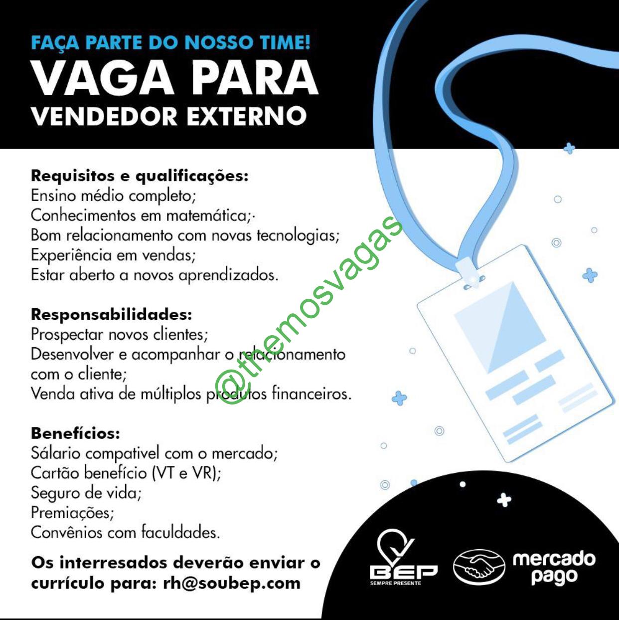 – Interessados(as) e que atendam ao perfil solicitado acima, devem enviar o currículo para o e-mail rh@soubep.com, contendo no título/assunto “Vendedor Externo – FOR“.