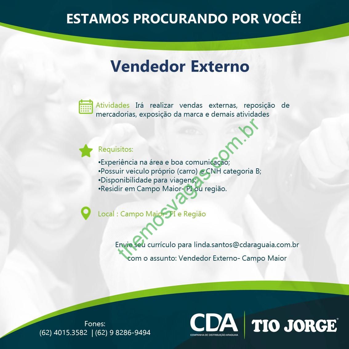 Interessados(as) e que atendam aos requisitos devem enviar o perfil profissional, colocando no título do e-mail “Vendedor Externo – Campo Maior”, para: linda.santos@cdaraguaia.com.br
