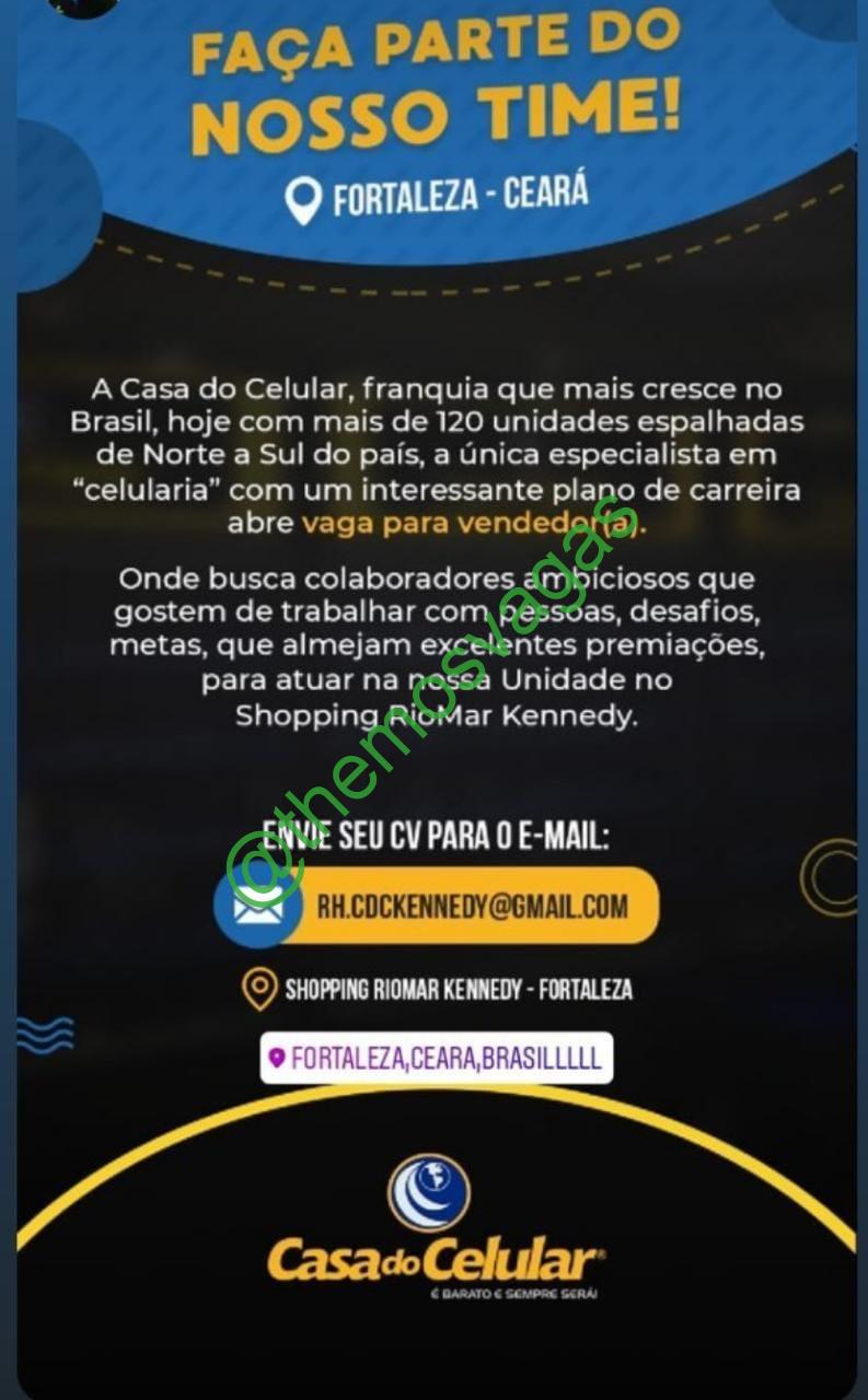 Quer participar do nosso grupo ‘Empregos Ceará’ no WhatsApp? Então, envie um whats solicitando o link do grupo para o número 85 997755352 em seguida adicione aos seus contatos.