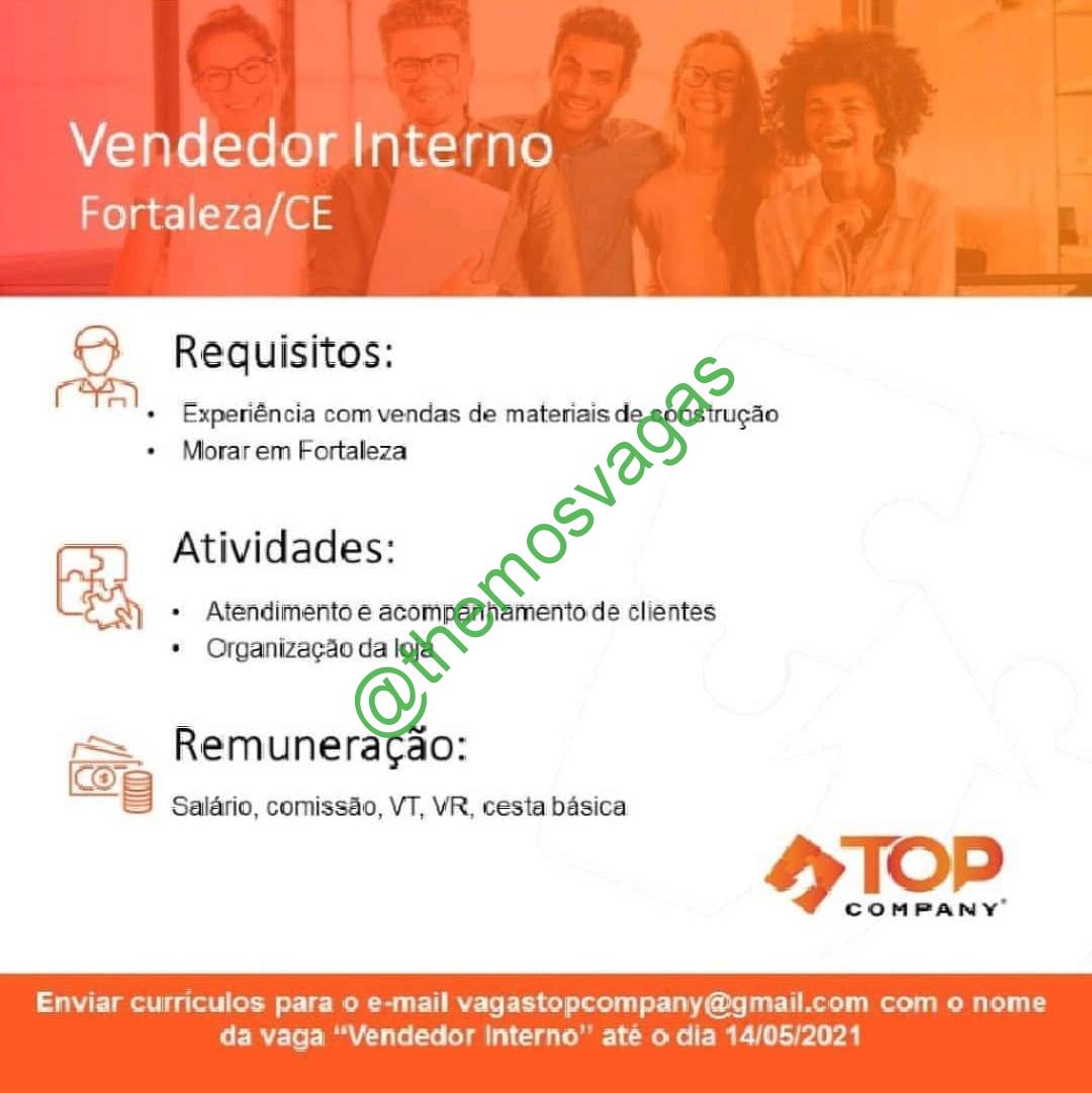 – Interessados(as) e que atendam ao perfil solicitado acima, devem enviar o currículo até 14/05/2021  para o e-mail vagastopcompany@gmail.com, contendo no título/assunto “Vendedor Interno – FOR