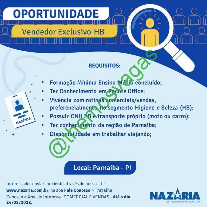 – Interessados(as) e que atendam ao perfil solicitado acima, devem cadastrar-se até 24/02/2021 através do site nazaria.com.br optando pela área de interesse “Comercial e Vendas“.