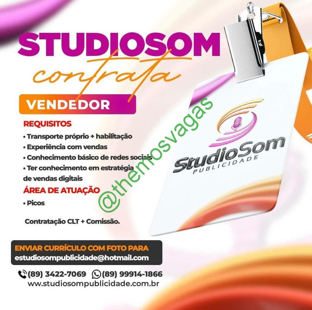 – Interessados(as) e que atendam ao perfil solicitado acima, devem enviar o currículo para o e-mail estudiosompublicidade@hotmail.com contendo no título/assunto “Vendedor Picos