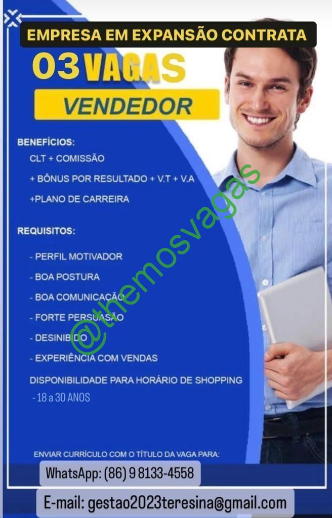 – Interessados(as) e que atendam ao perfil solicitado acima, devem enviar o currículo para o e-mail gestao2023teresina@gmail.com contendo no título/assunto “Vendedor – THE” ou através do telefone/whats (86) 981334558.