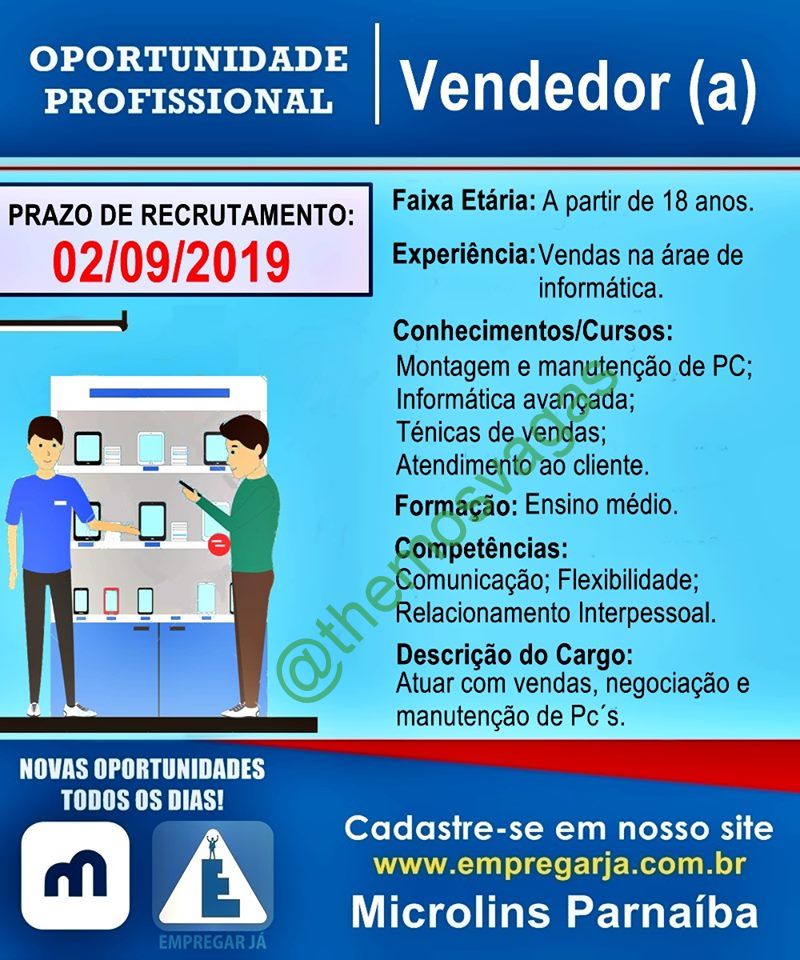 Vendedor(a) / 01 vaga(s) / Parnaíba – PI
