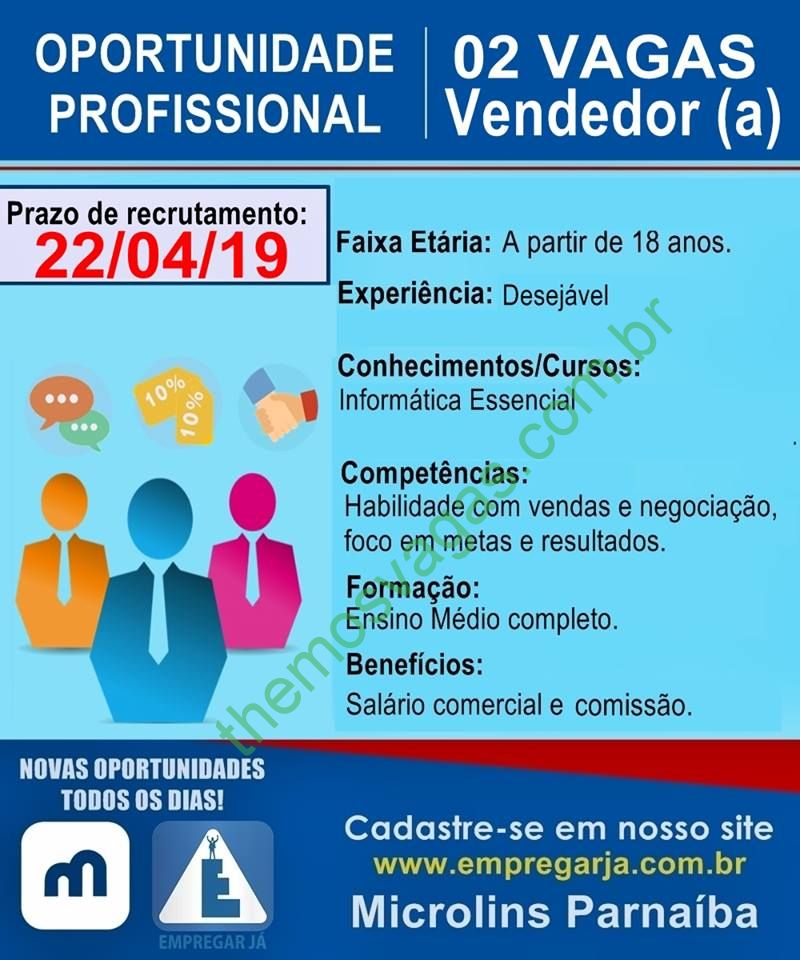---------- ATENÇÃO: Essa vaga é de responsabilidade do anunciante. Fique atento para possíveis golpes. Se perceber algo suspeito, nos comunique através do e-mail floromauel@gmail.com colocando no título "Themos Vagas - Denúncia" juntamente com o link da publicação e o motivo da denúncia na descrição da mensagem para que possamos analisar e parar de divulgar o anúncio. ----------