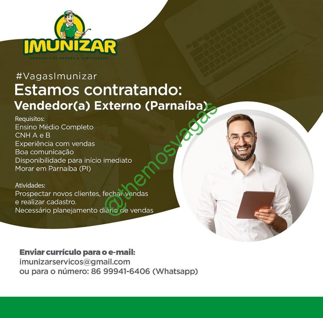 – Interessados(as) e que atendam ao perfil solicitado acima, devem enviar o currículo para o e-mail imunizarservicos@gmail.com contendo no título/assunto “Vendedor(a) Externo” ou para o número/whats (86) 99941-6406