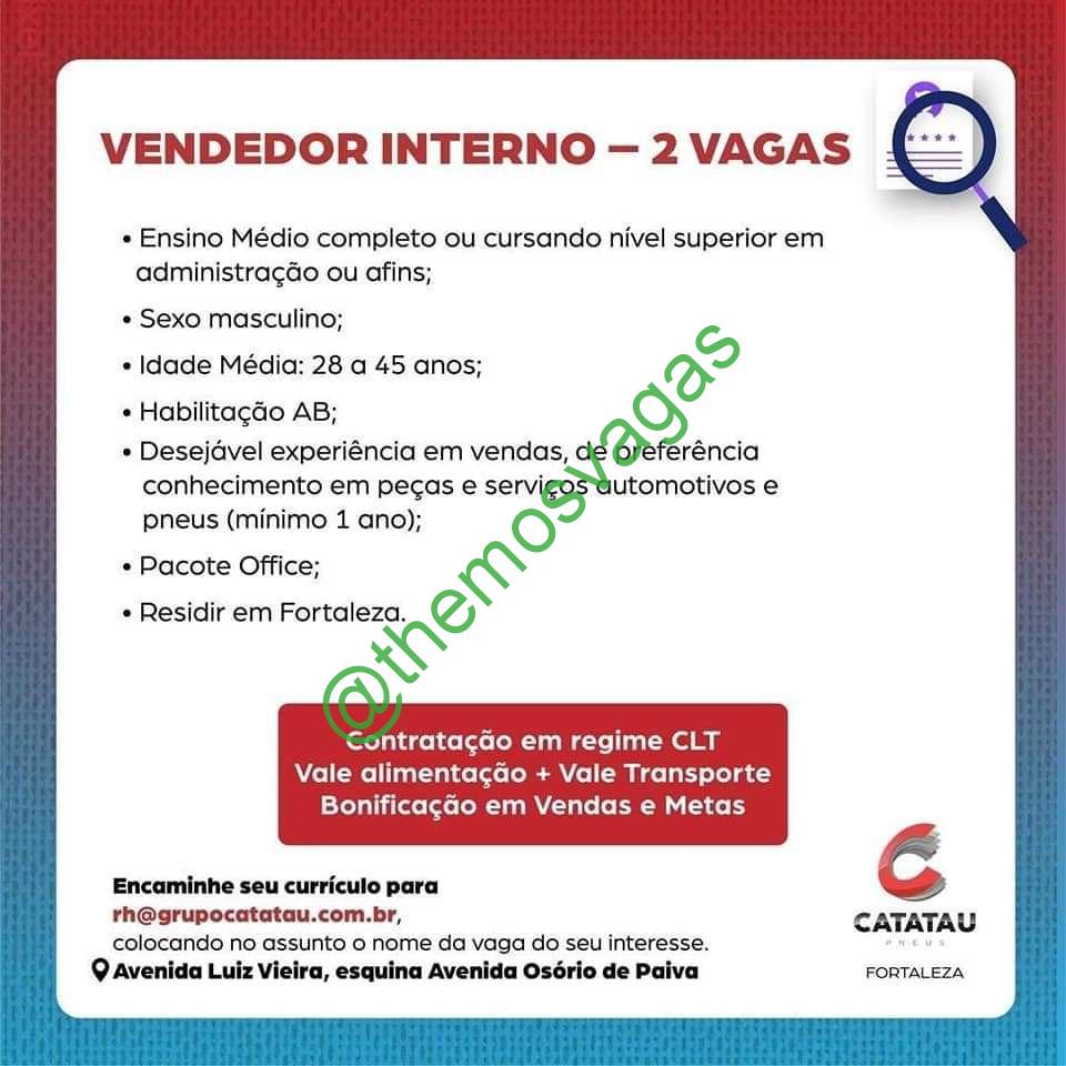 – Interessados(as) e que atendam ao perfil solicitado acima, devem enviar o currículo para o e-mail rh@grupocatatau.com.br, contendo no titulo/assunto “Vendedor(a) Interno – FOR”