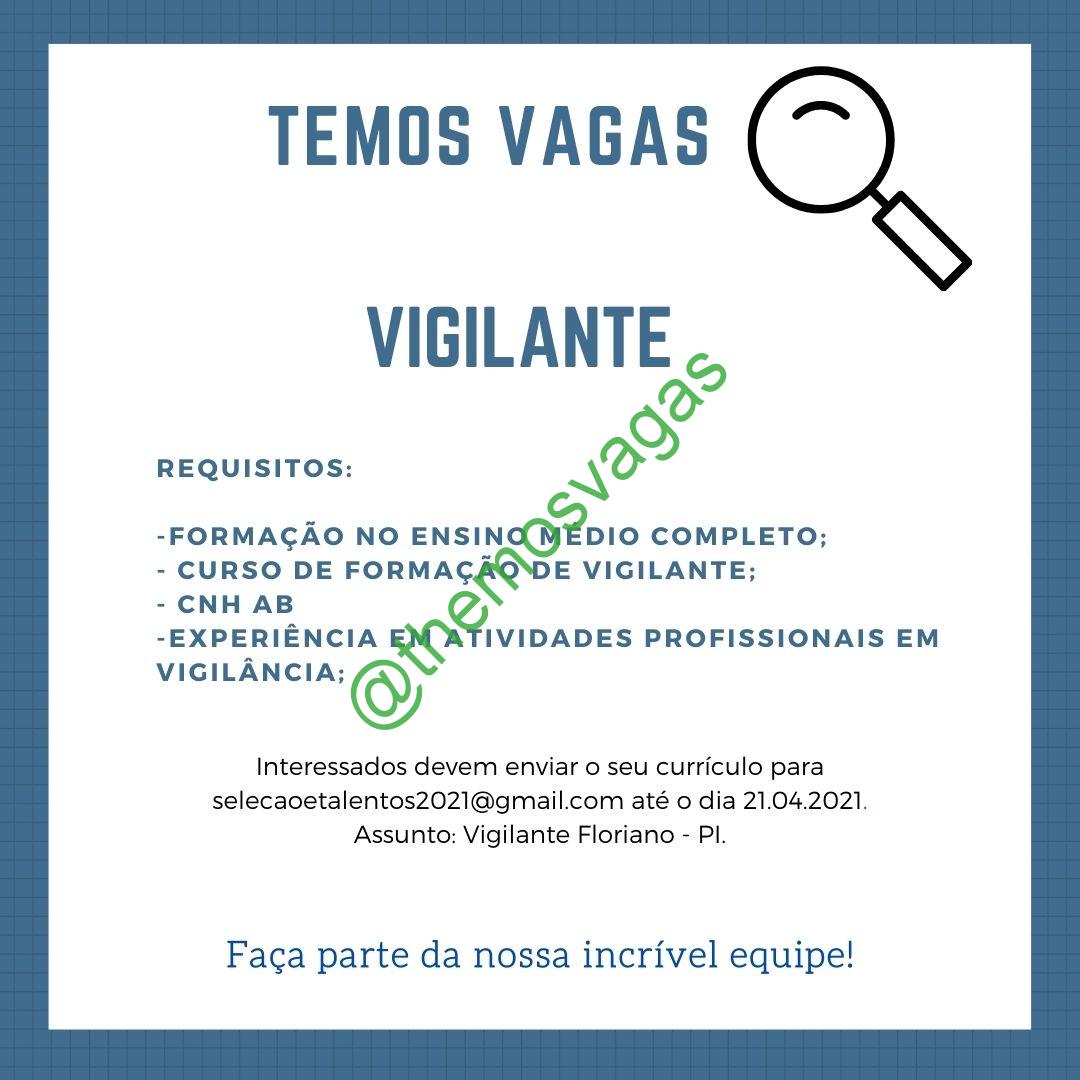 – Interessados(as) e que atendam ao perfil solicitado acima, devem enviar o currículo até 21/04/2021 para o e-mail selecaoetalentos2021@gmail.com , contendo no título/assunto “Vigilante Floriano – PI“.